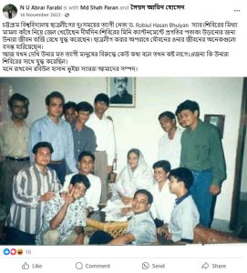 অন্যদিকে, ২০২২ সালের একটি পোস্টে তিনি ছাত্রলীগের নেতা ড. রবিউল হাসানকে ‘শিবিরের বিরুদ্ধে লড়াকু’ হিসেবে অভিহিত করে লেখেন, “ছাত্রলীগ করার অপরাধে জীবনের অনেক বসন্ত হারিয়েছেন। আজ যারা তাঁর মতো ত্যাগী মানুষের বিরুদ্ধে কথা বলেন, তারা ভুল করছেন।”